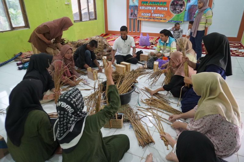 BALANGAN – Masyarakat Desa Gulinggang, Kecamatan Juai, Kabupaten Balangan, Kalimantan Selatan mengikuti pelatihan kerajinan tangan dari bahan Purun dan Eceng Gondok melalui program Desa Mandiri Adaro yang bekerja sama dengan CSR Balangan Coal.