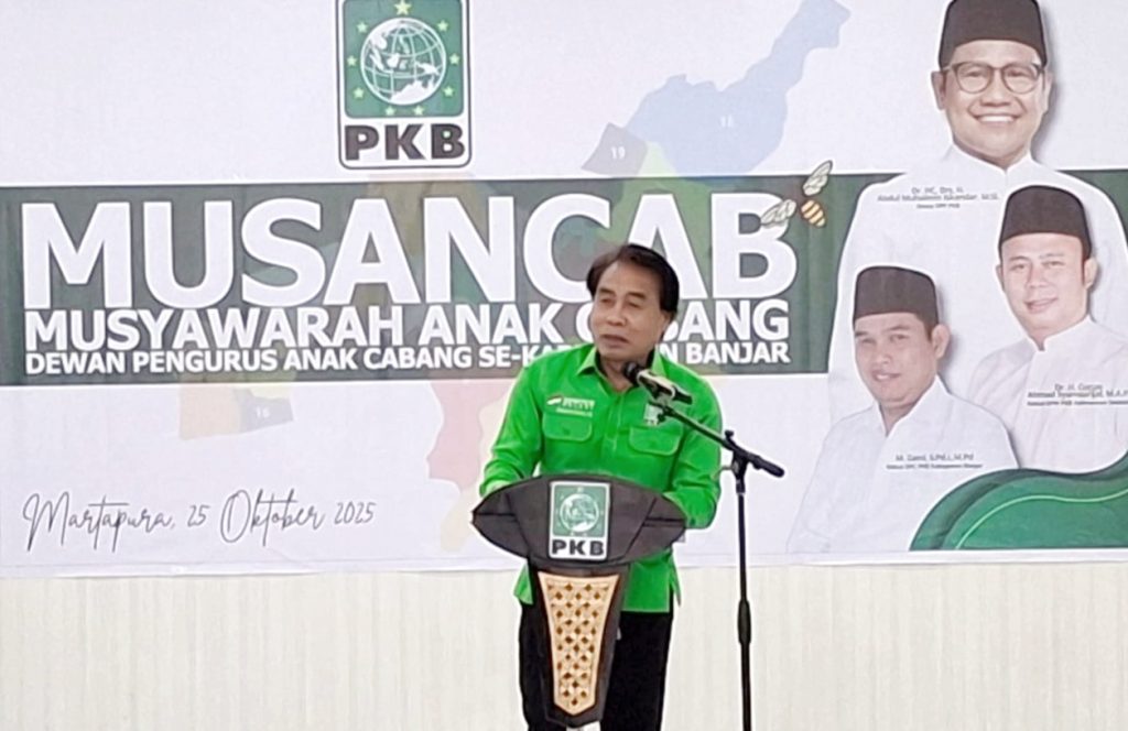 MARTAPURA – Langkah konsolidasi politik terus diperkuat Dewan Pengurus Cabang (DPC) Partai Kebangkitan Bangsa (PKB) Kabupaten Banjar. Melalui Musyawarah Anak Cabang (Musancab) yang digelar di Wisma Sultan Sulaiman, Martapura, Sabtu (25/10/2025), partai berlambang bola dunia itu menegaskan kesiapannya menatap Pemilu 2029.