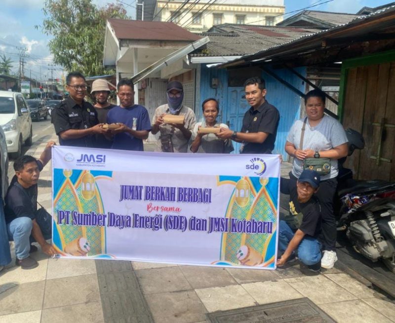 KOTABARU – Keluarga besar Jaringan Media Siber Indonesia (JMSI) Kotabaru bekerja sama dengan PT Sumber Daya Energi (SDE) menggelar aksi sosial bertajuk Jumat Berkah Berbagi, Jumat (3/10/2025).